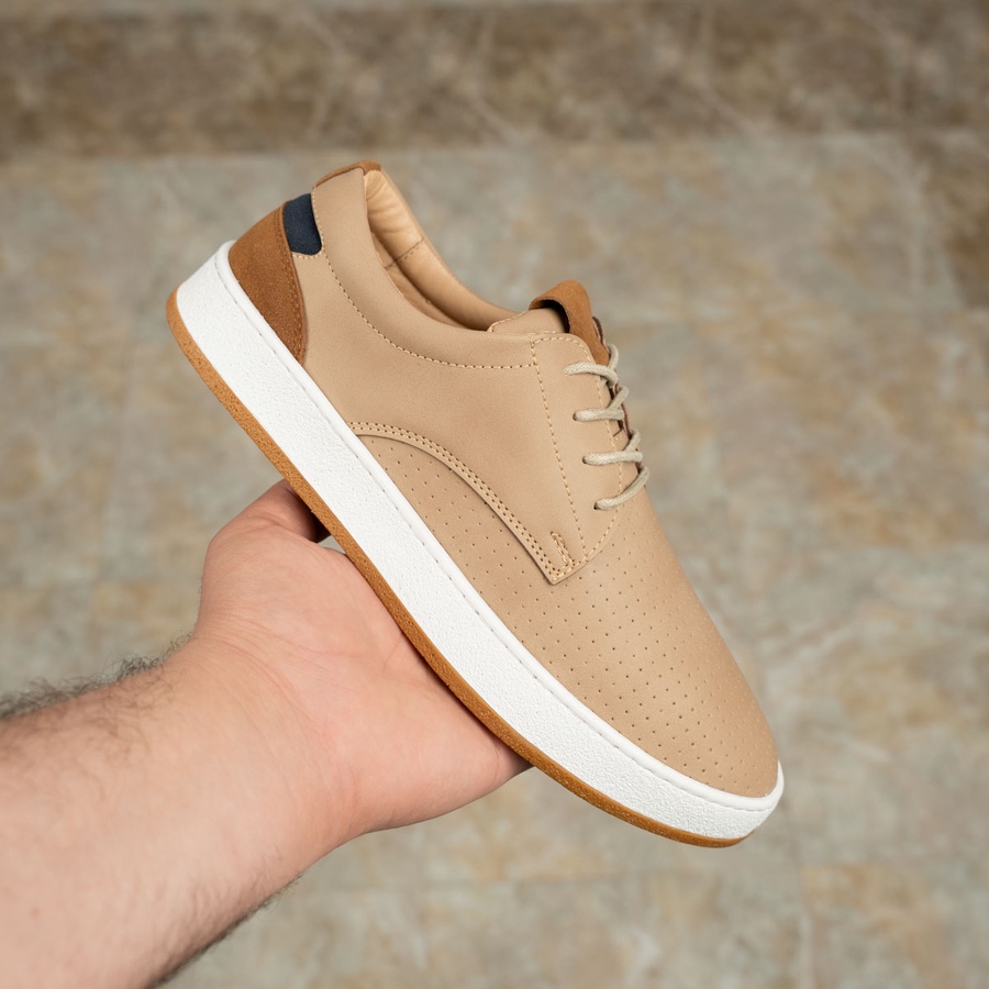 حذاء تومي مصنوع من جلد مستورد مخرّم ومطعّم بشمواه لتهوية ممتازة