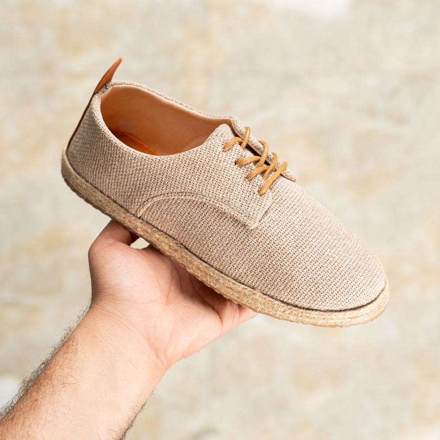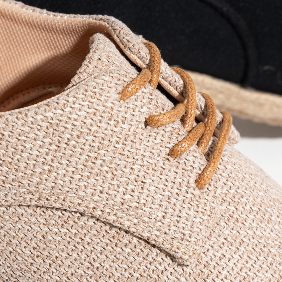 مصنوع من خيش مستورد بخامة متينة، والخيش محقون جوّة النعل مع اللزق والخياطة لضمان أفضل تقفيل